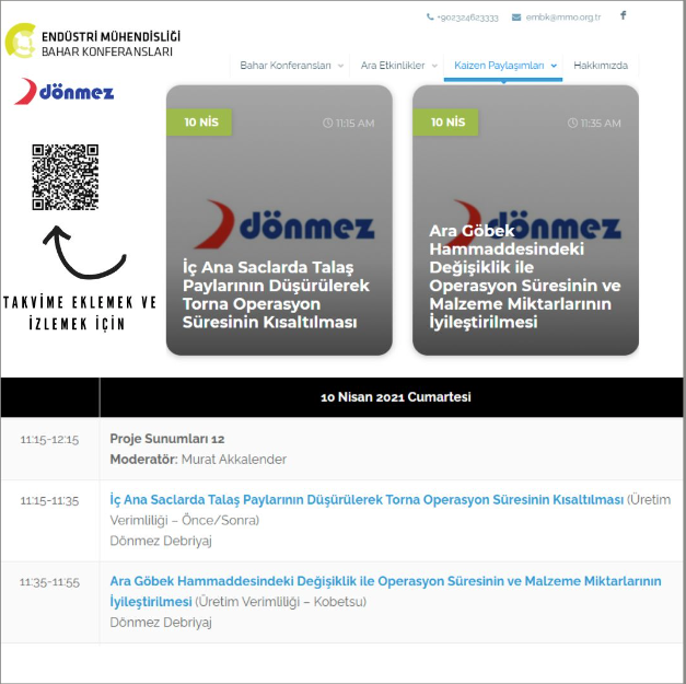 TMMOB Makina Mühendisleri Odası’nın 7. Kaizen Paylaşımları etkinliğinde 2 projemizi sunduk. Canlı yayınlanan oturumda verimlilik ve kalite üzerine geliştirdiğimiz çözümleri paylaştık. Tüm ekip arkadaşlarımızı bu başarı için tebrik ediyoruz.